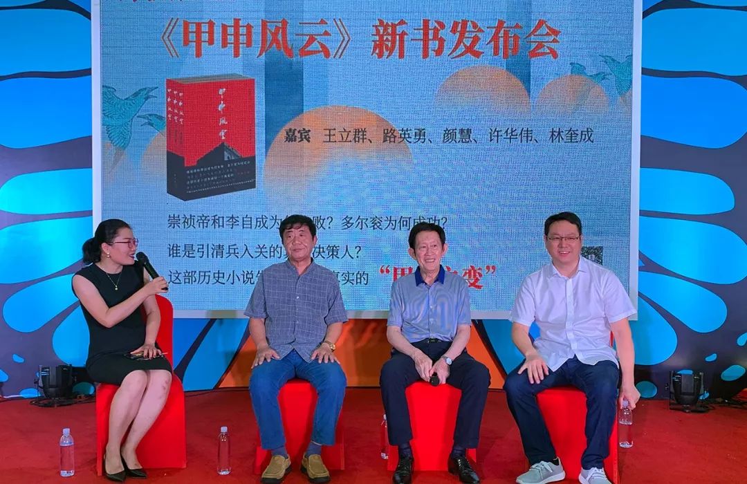 28日上午,由作家出版社推出,河南历史学者、作家林奎成耗时数年精心创作的长篇历史小说《甲申风云》发布会在书博会上举行。著名文化学者、《百家讲坛》主讲人王立群特意赶来为这位老乡、也是多年的朋友助阵。河南美术出版社总编辑许华伟对历史小说非常有研究,他在发布会上对这部作品赞赏有加。作家出版社有限公司董事长路英勇出席本次活动,发布会由作家出版社副总编辑颜慧主持。